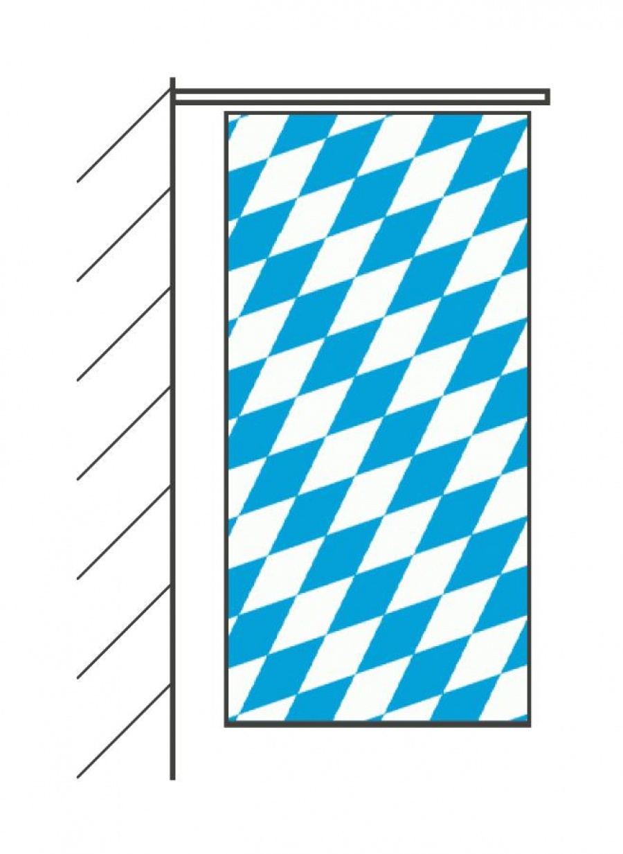 Hängefahnen werden wie Banner oben an der Schmalseite befestigt. Die passenden Fassadenhaltungen sind meist waagerecht oder leicht schräg an Gebäuden befestigt.
