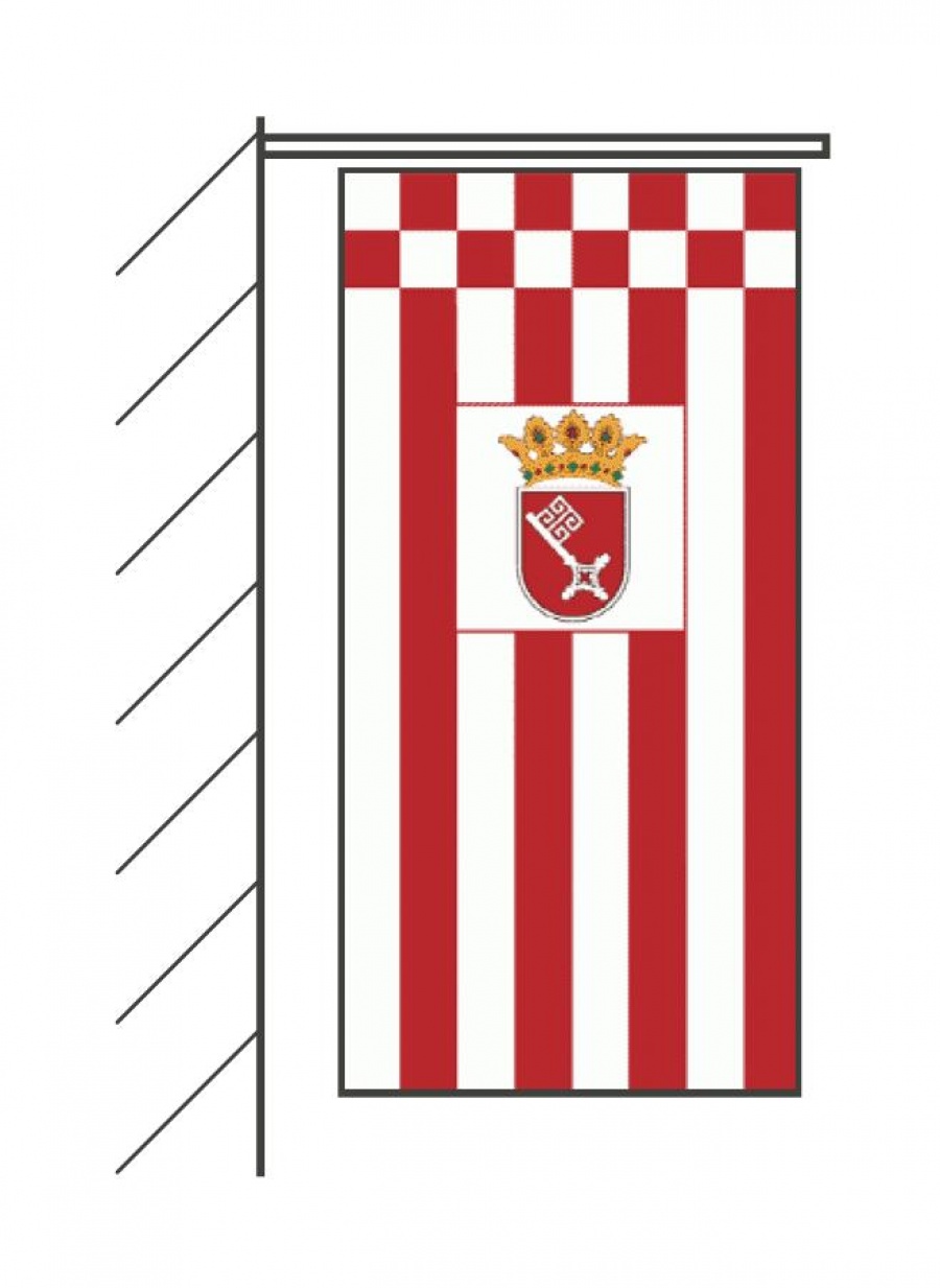 Hängefahnen werden wie Banner oben an der Schmalseite befestigt. Die passenden Fassadenhaltungen sind meist waagerecht oder leicht schräg an Gebäuden befestigt.