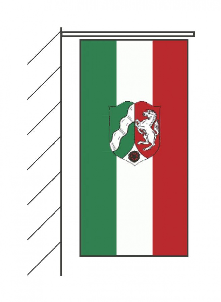 Oft finden wir Sie in öffentlichen Bereichen wo kein Platz für Fahnenmasten vorhanden ist. Eine zusätzliche Ösenkonfektion und Leinenarretierung an der mauerseitigen unteren Ecke verhindert ein überschlagen der Fahnen bei starken Wind.
