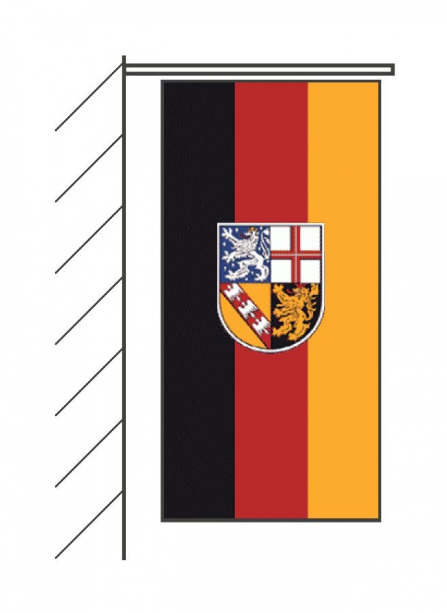Hängefahnen werden wie Banner oben an der Schmalseite befestigt. Die passenden Fassadenhaltungen sind meist waagerecht oder leicht schräg an Gebäuden befestigt.