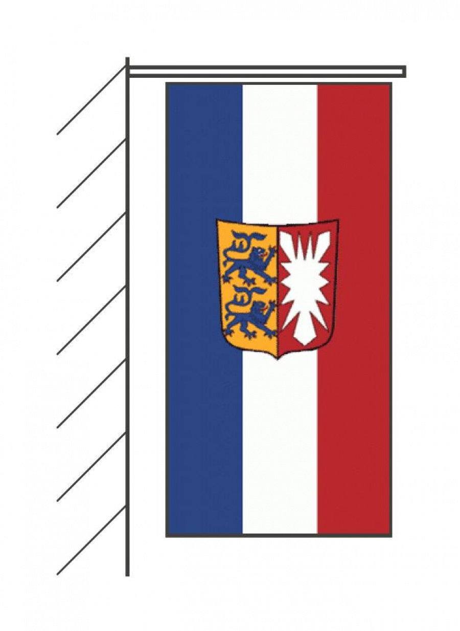 Hängefahnen werden wie Banner oben an der Schmalseite befestigt. Die passenden Fassadenhaltungen sind meist waagerecht oder leicht schräg an Gebäuden befestigt.