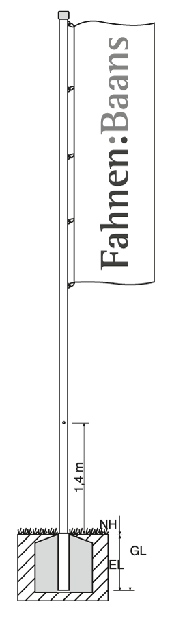 Im Mastrohr laufendes Perlon-Hissseil (Ø 5 mm) mit dem zehntausendfach bewährten Schnellfixiersystem SFS mit Bediengehäuse und schließbarem Türchen. Hissen der Fahne erfolgt durch Ziehen des Perlonseiles.