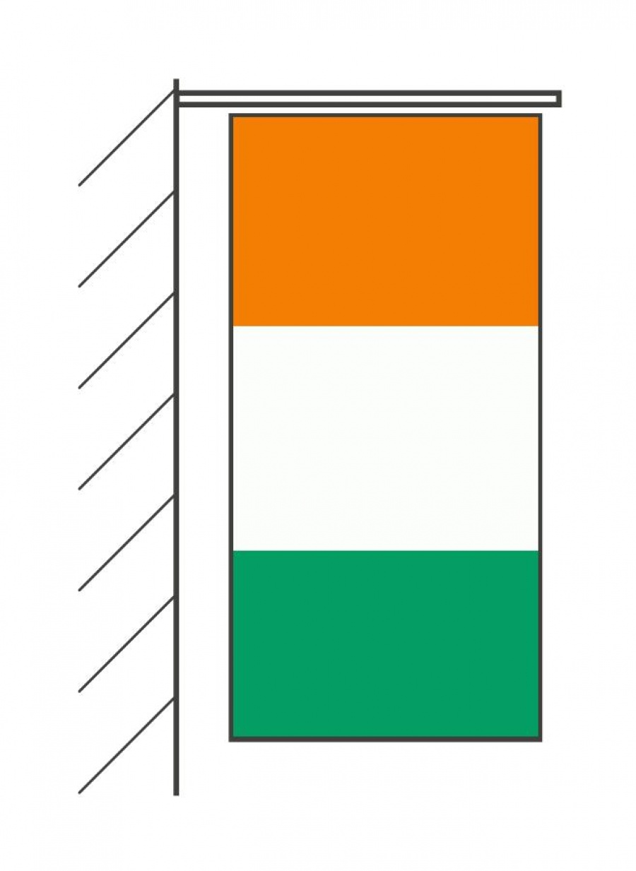 Hängefahnen werden wie Banner oben an der Schmalseite befestigt. Die passenden Fassadenhaltungen sind meist waagerecht oder leicht schräg an Gebäuden befestigt.