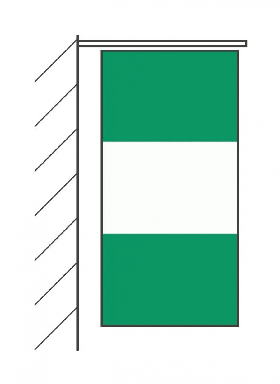 Hängefahnen werden wie Banner oben an der Schmalseite befestigt. Die passenden Fassadenhaltungen sind meist waagerecht oder leicht schräg an Gebäuden befestigt.