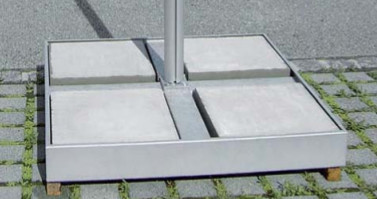 Die Beschwerung des Stahlrahmens erfolgt mit je 12 Stück Betonplatten in der Abmessung 50 x 50 x 5 cm mit einem Stückgewicht von je 30 kg. Zusammen mit dem Eigengewicht des Stahlrahmens von 50 kg entsteht somit ein Ballastgewicht von ca. 410 kg. Dadurch ist – bei der Nennhöhe 7 m – eine Standsicherheit gewährleistet bis zu einer maximalen Fahnenfläche von 4,00 x 1,50 m. Die Mobilkonsole benötigt eine Aufstellfläche von 1,20 x 1,20 m und ist ca. 20 cm hoch.