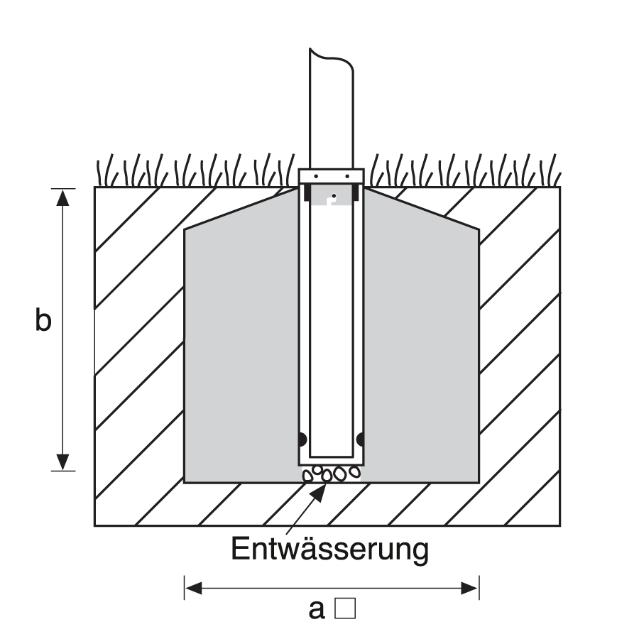 Standard-Befestigung ist die Passform-Bodenhülse.
